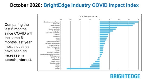 BrightEdge data shows an increase in search interest across the vast majority of categories in the six months leading up to October 2020. (Image: BrightEdge)