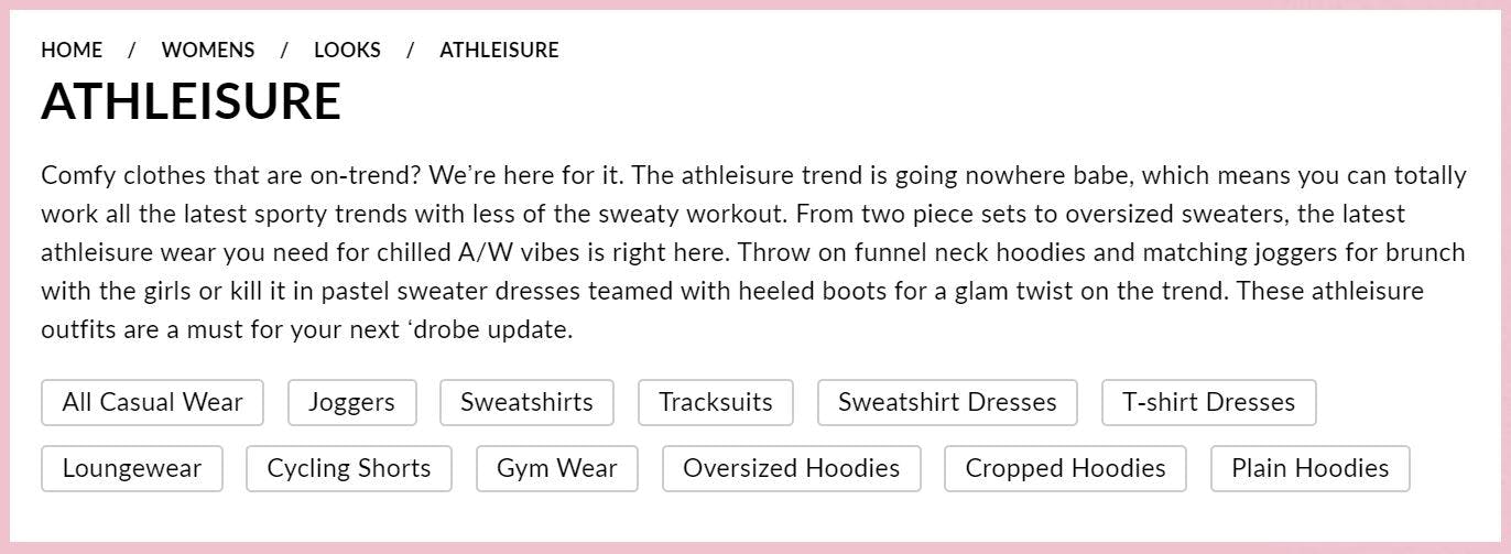 The copy across Boohoo’s website projects the same fun, laid-back tone, and while the majority of shoppers aren’t going to be paying close attention to the copy, all of it contributes to and reinforces the overall feel of the brand.