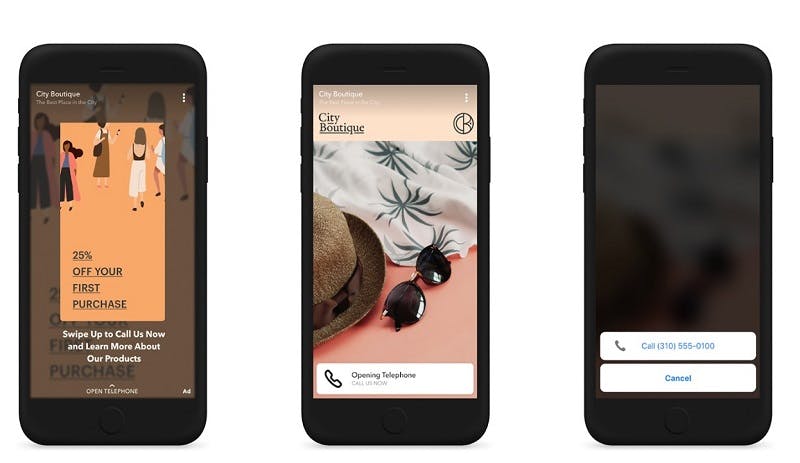 Snapchat is keen to attract more businesses to its platform with its new swipe up to call or text feature.